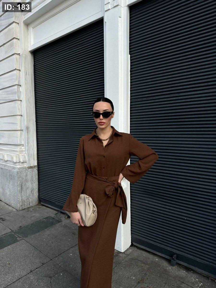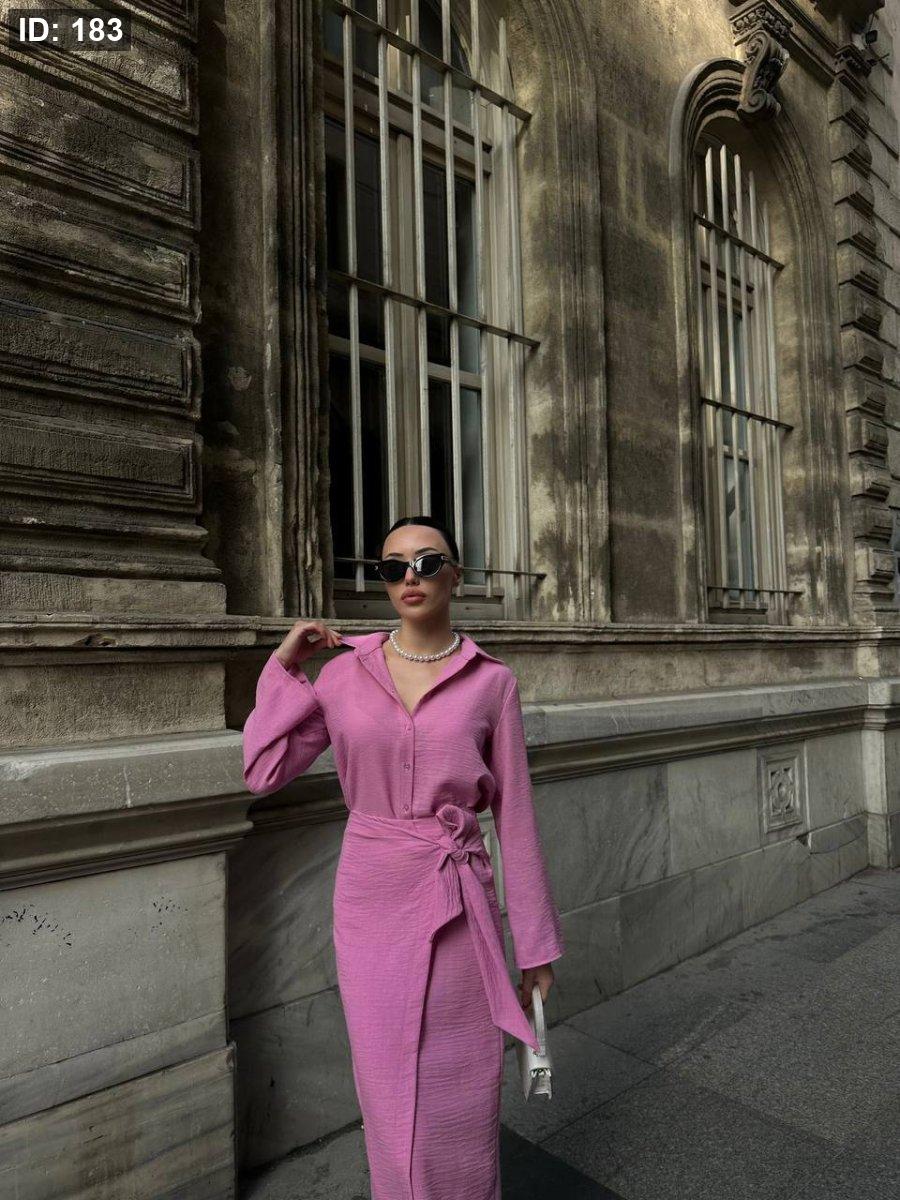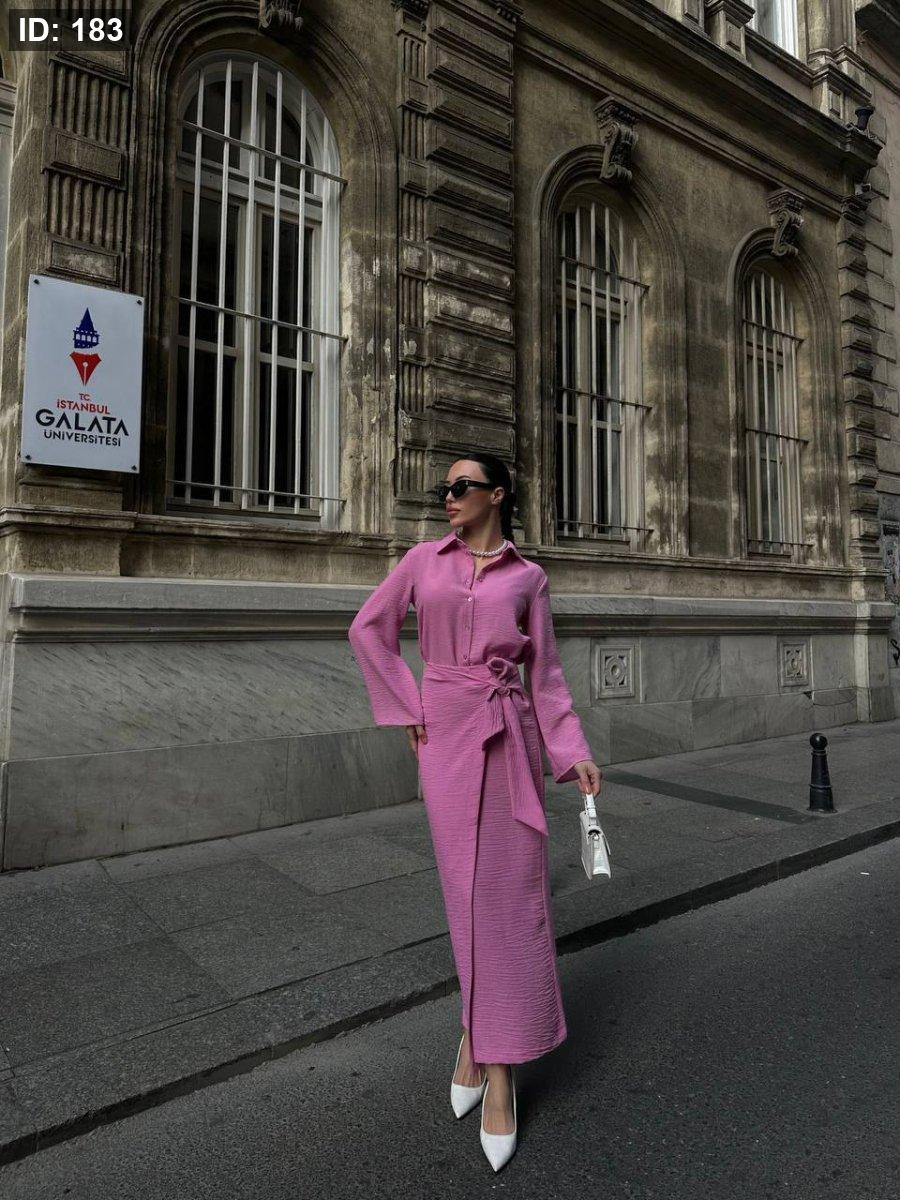 طقم تنورة وقميص كتان