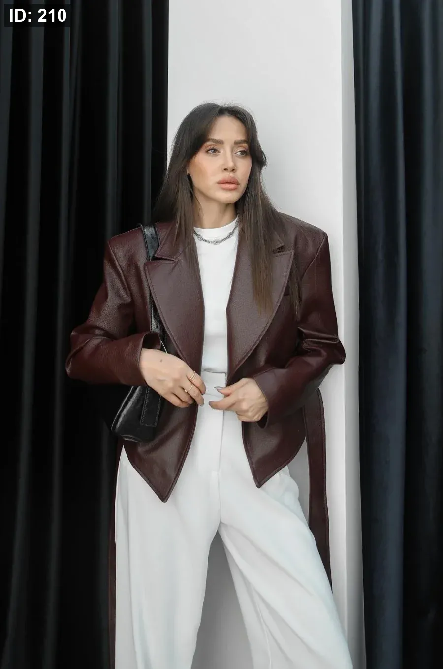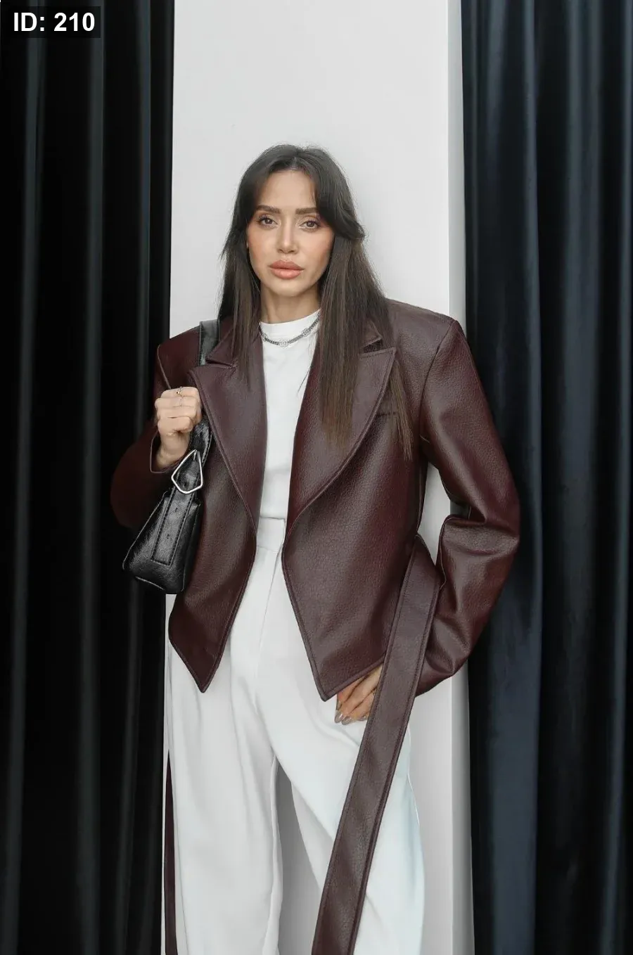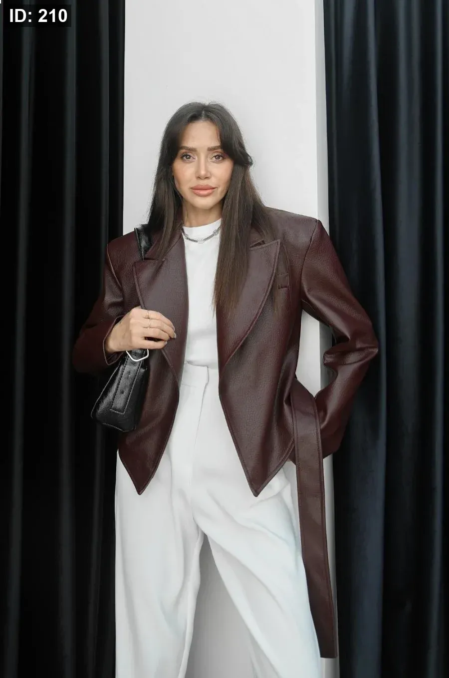 جاكيت جلد قصير برغندي