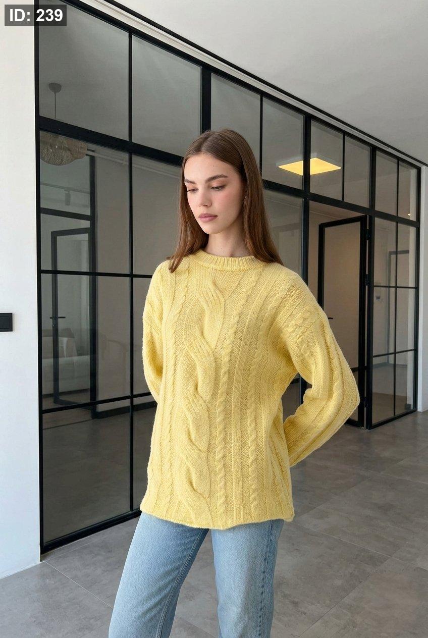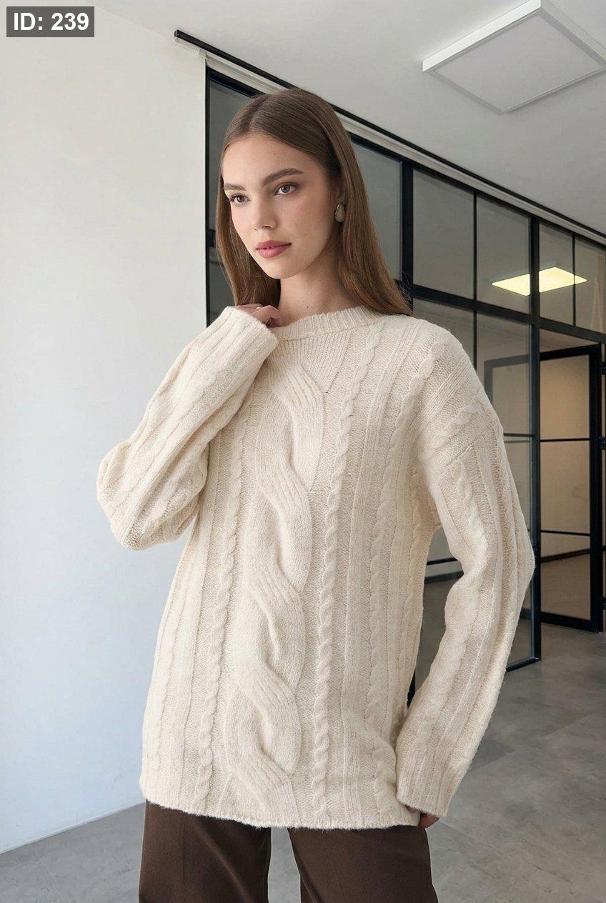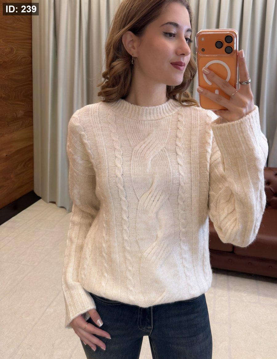 كنزة تريكو ناعمة بتصميم مضفّر أنيق، بياقة دائرية وأكمام طويلة، تمنح إطلالة كلاسيكية راقية تناسب الشتاء والخريف. خامتها الدافئة والمريحة تجعلها خيارًا مثاليًا للاستخدام اليومي، وسهلة التنسيق مع الجينز أو التنانير لإطلالة أنثوية بسيطة وأنيقة.