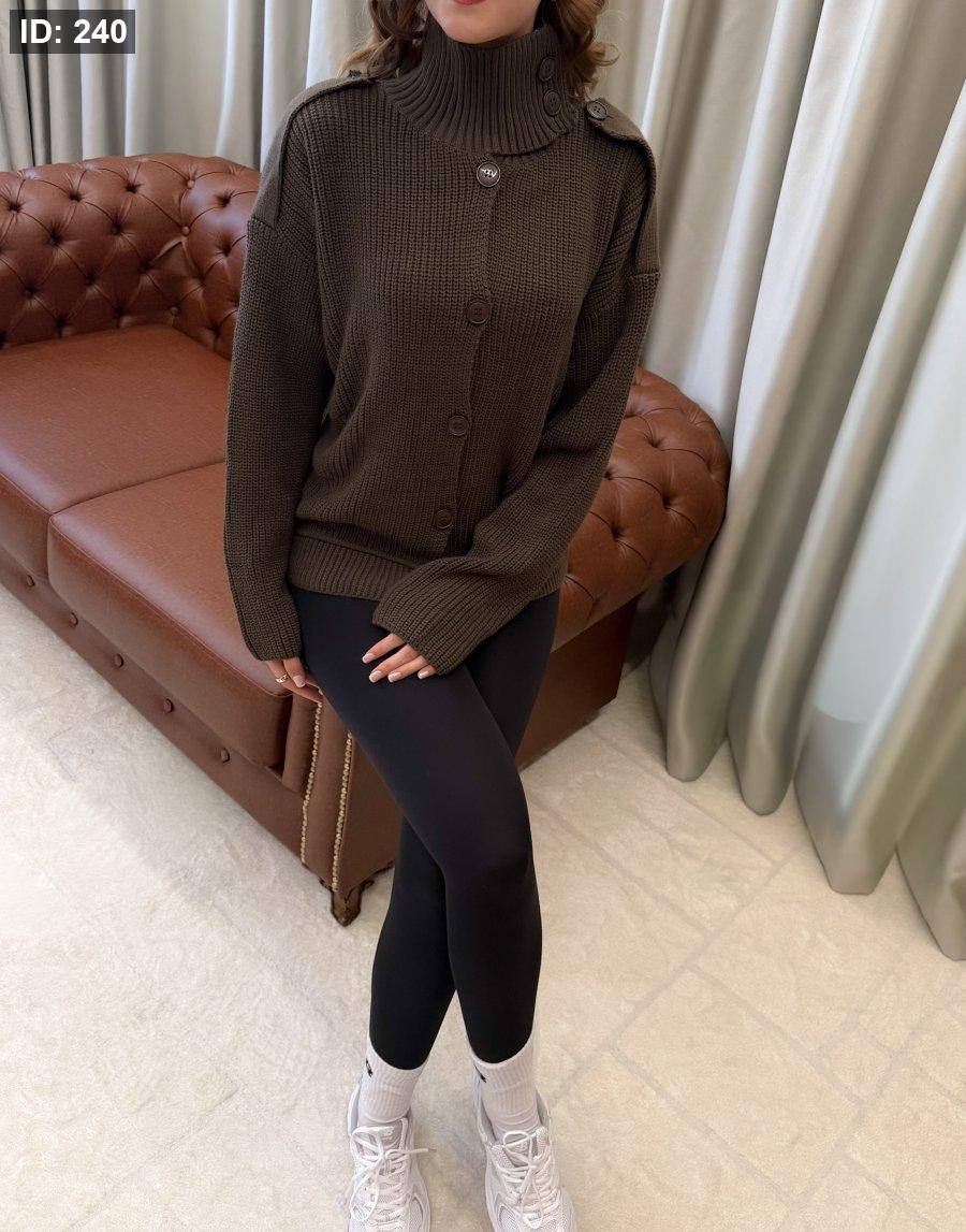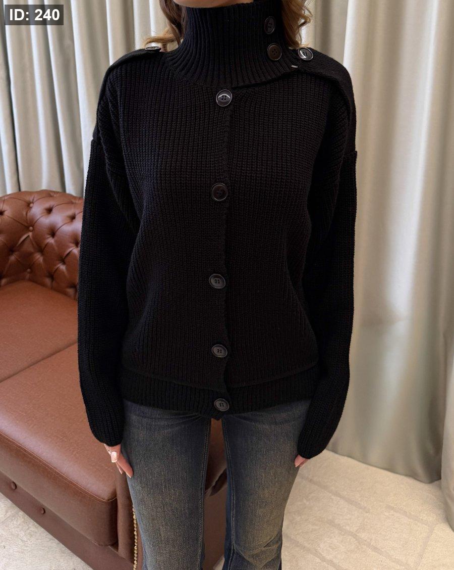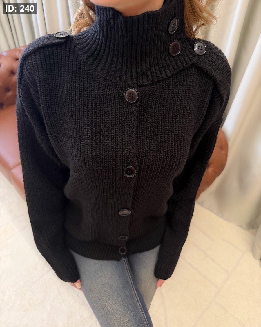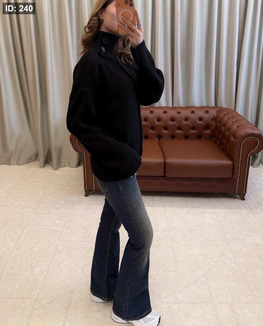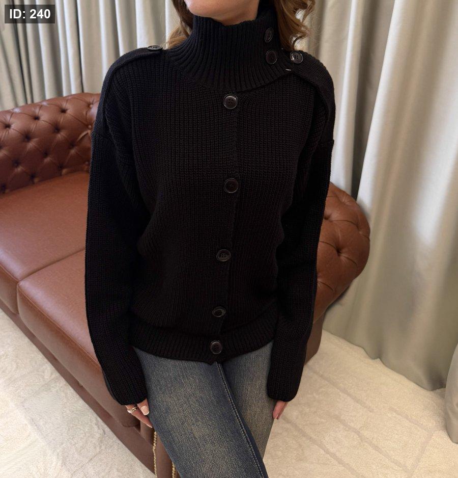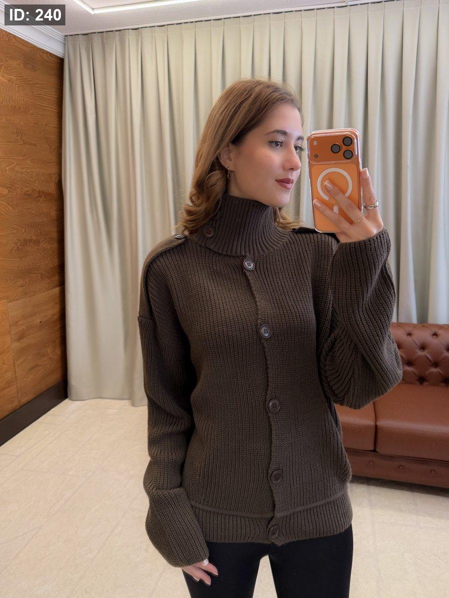 كنزة تريكو أنيقة بياقة عالية مميّزة مع أزرار جانبية تضيف لمسة عصرية راقية. تصميمها المحبوك بقصّة أنثوية يبرز القوام بشكل جميل، مع أكمام طويلة وأزرار أمامية تضفي طابعًا كلاسيكيًا عمليًا. قطعة مثالية للإطلالات اليومية أو الكاجوال الأنيق، وسهلة التنسيق مع الجينز أو البنطال القماشي.