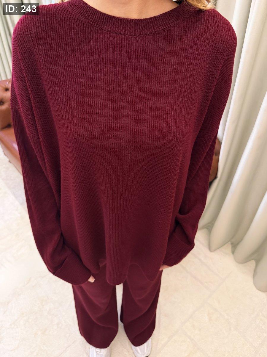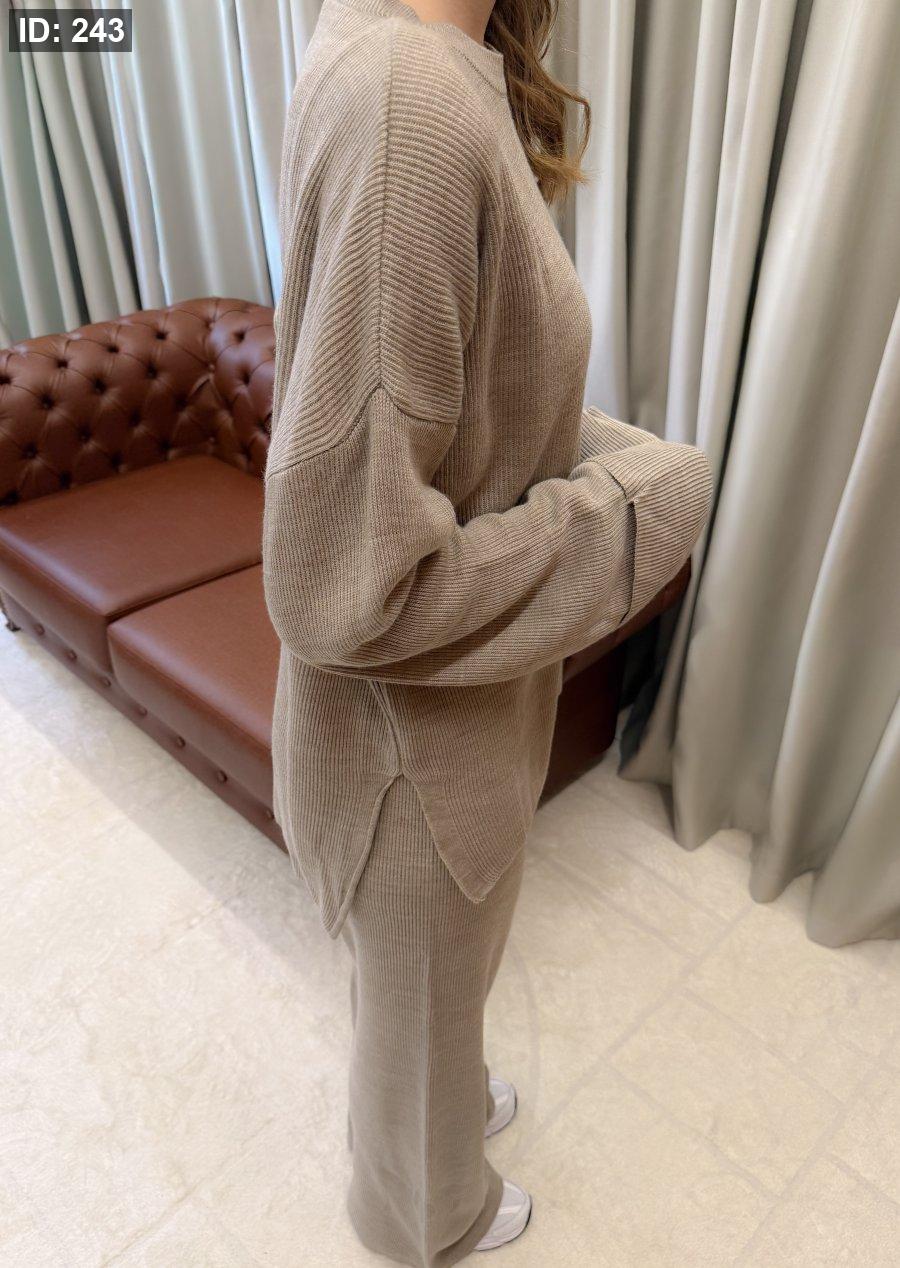 طقم عصري يجمع بين الراحة والفخامة الهادئة، بخامة تريكو سميكة تمنحك الدفء والإحساس الناعم طوال اليوم. قصّته الأوفرسايز تمنح حرية حركة وإطلالة أنيقة بدون مجهود، مثالي للإطلالات اليومية، السفر، أو الكاجوال الراقي. قطعة أساسية لا غنى عنها لكل من تحب الأناقة البسيطة والعملية.