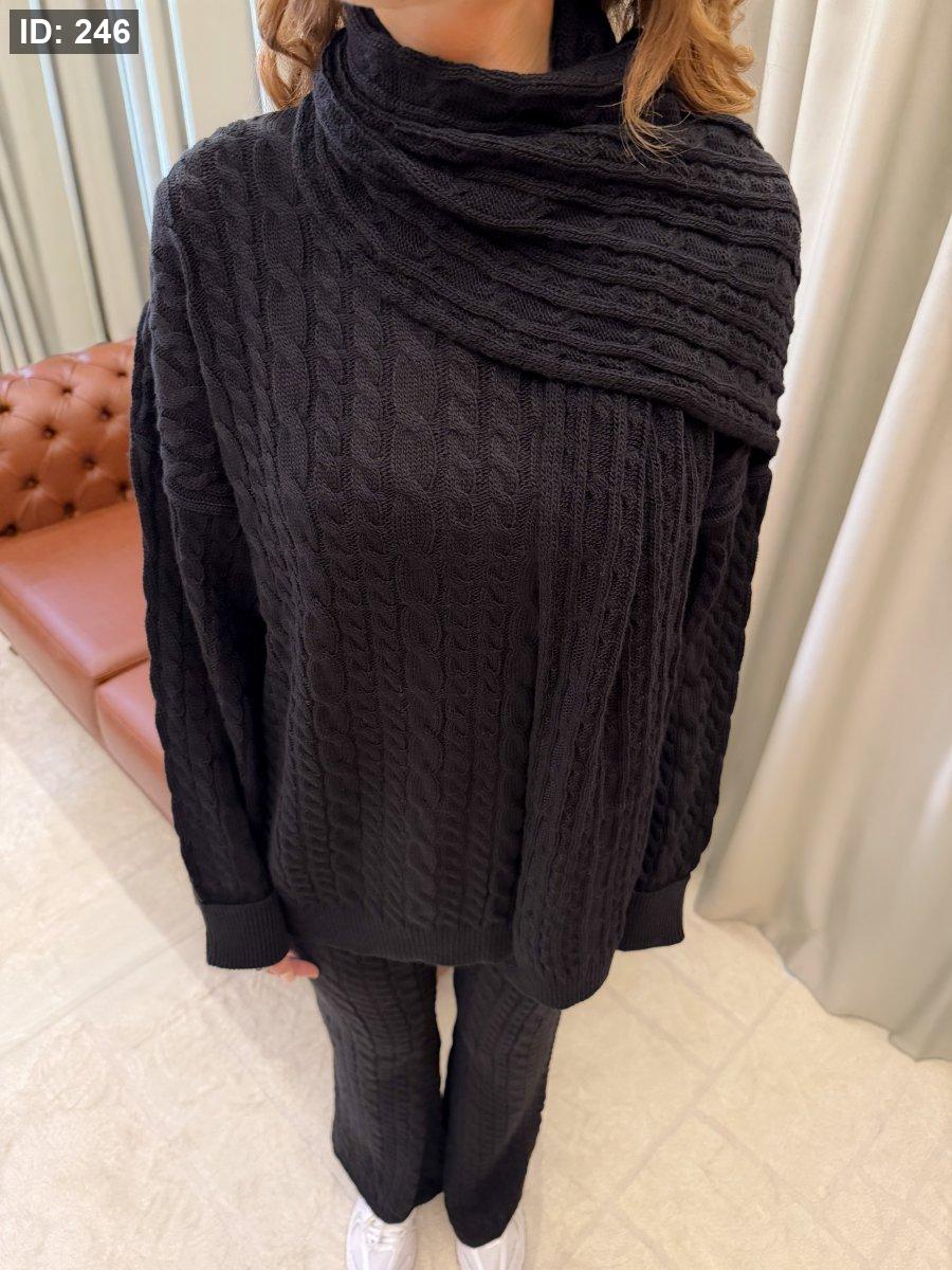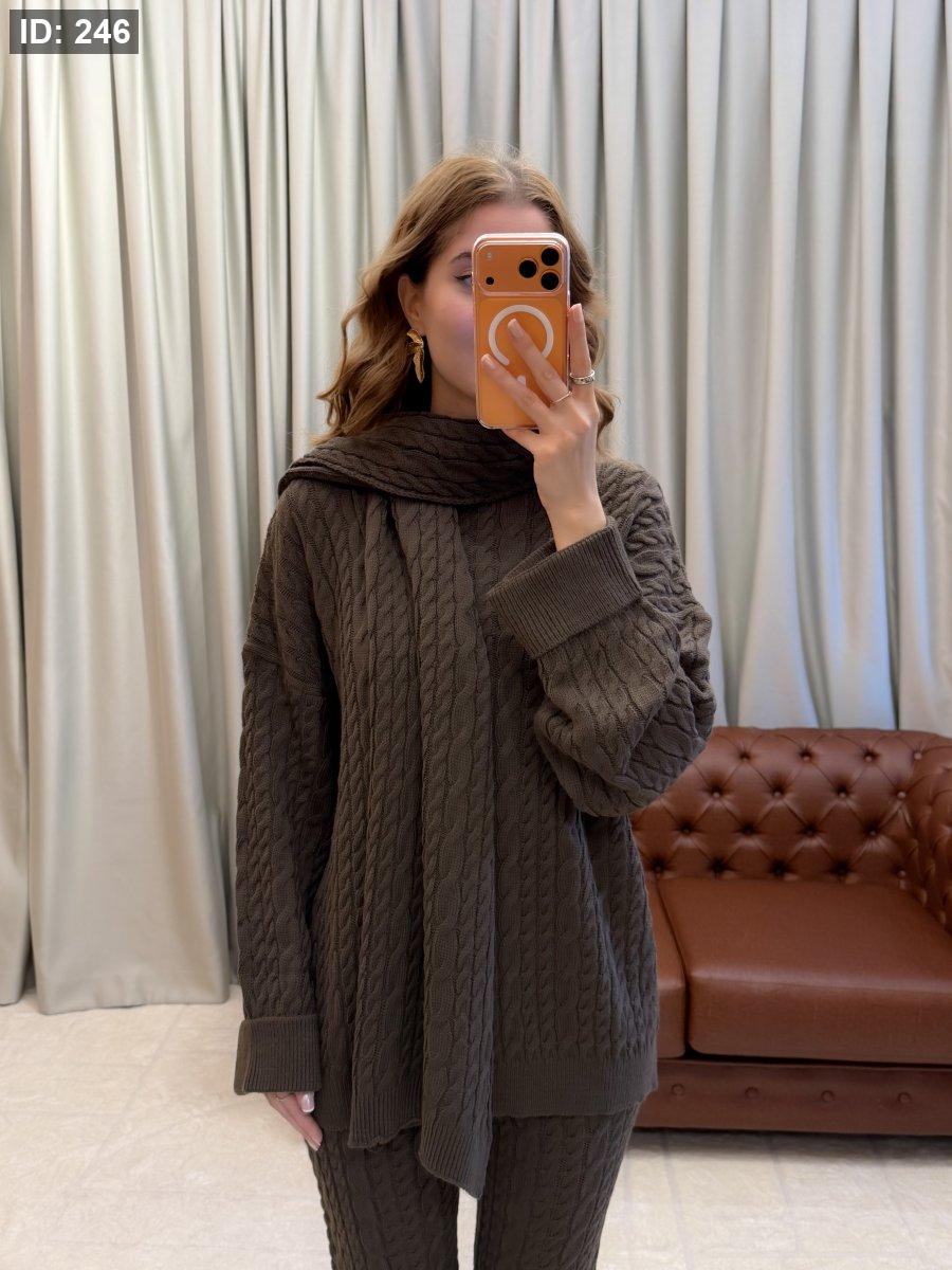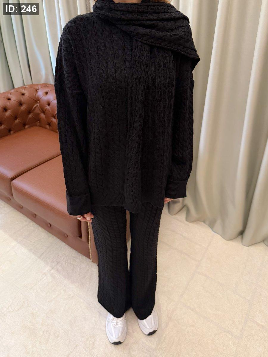 طقم تريكو متكامل بتصميم ضفيرة كلاسيكي أنيق، يتكوّن من كنزة وبنطال مع وشاح متناسق ليمنحك إطلالة شتوية دافئة ومتكاملة. خامته الناعمة وقصّته المريحة تجمع بين الأناقة والراحة، ما يجعله خيارًا مثالياً للإطلالات اليومية الراقية أو الخروجات الشتوية الأنيقة.